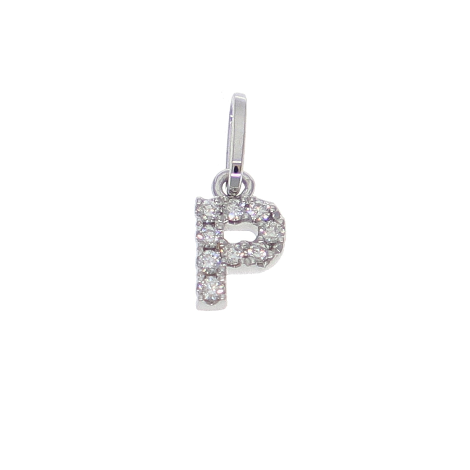 Colgante letra P de oro blanco 18kt y brillantes