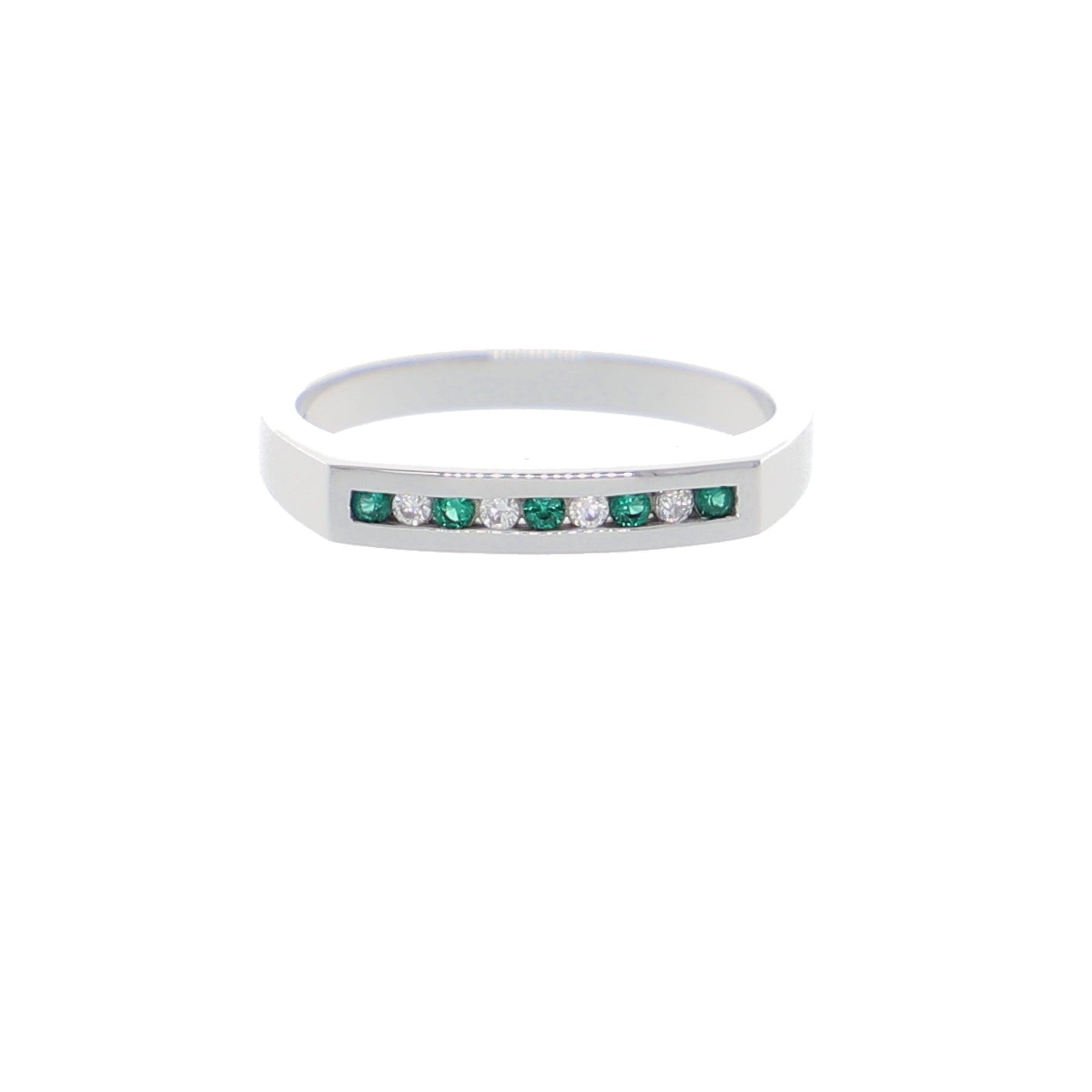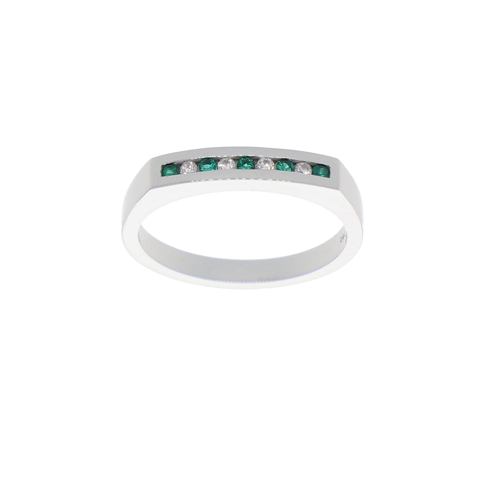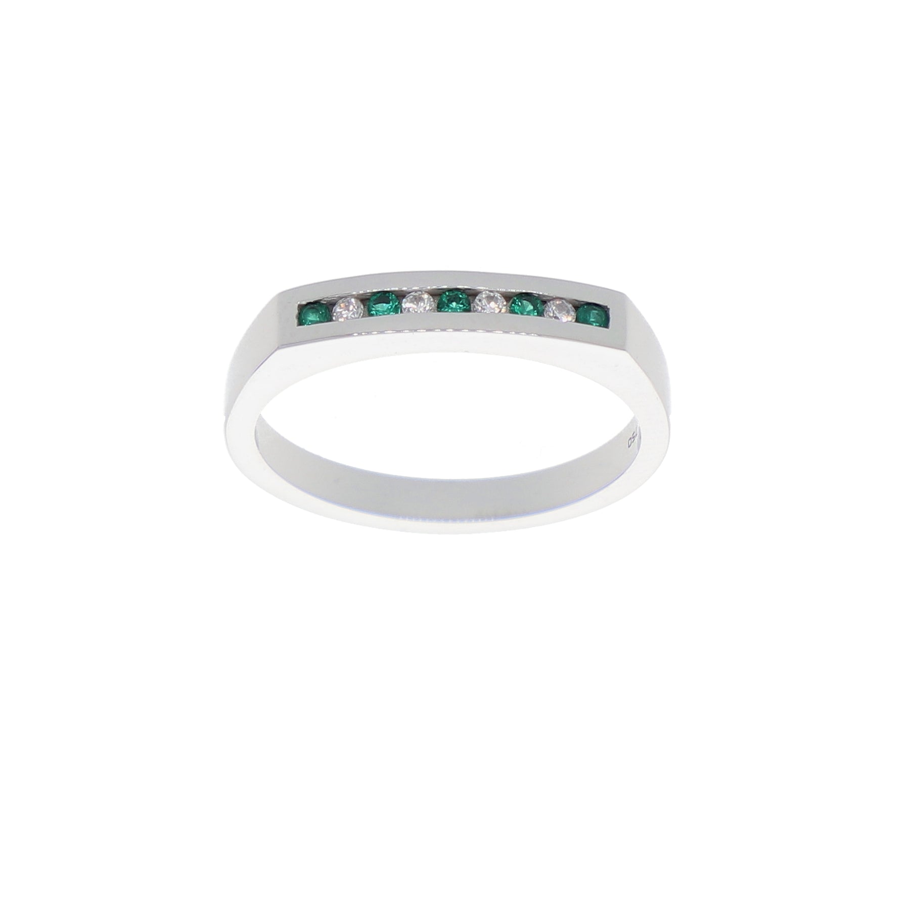 Anillo Oro Blanco y Circones Medio Cintillo AN-13688