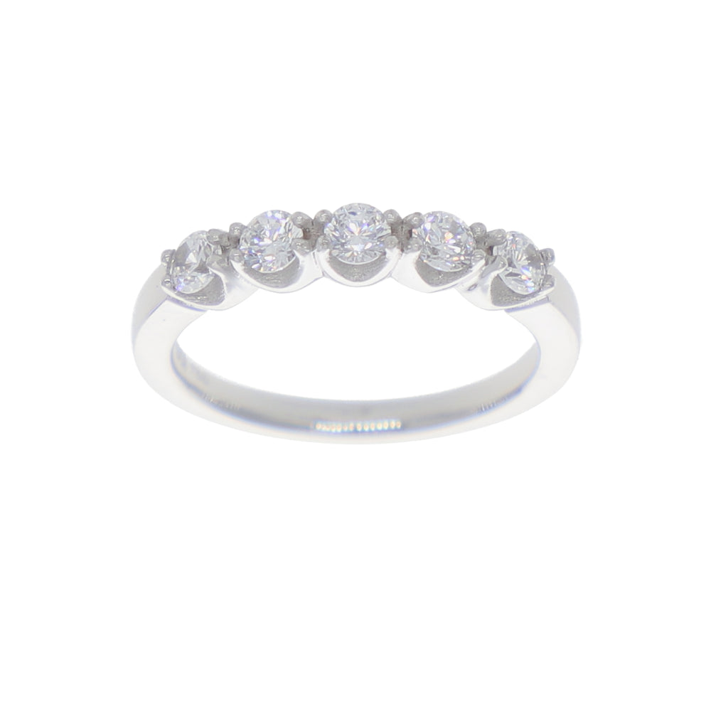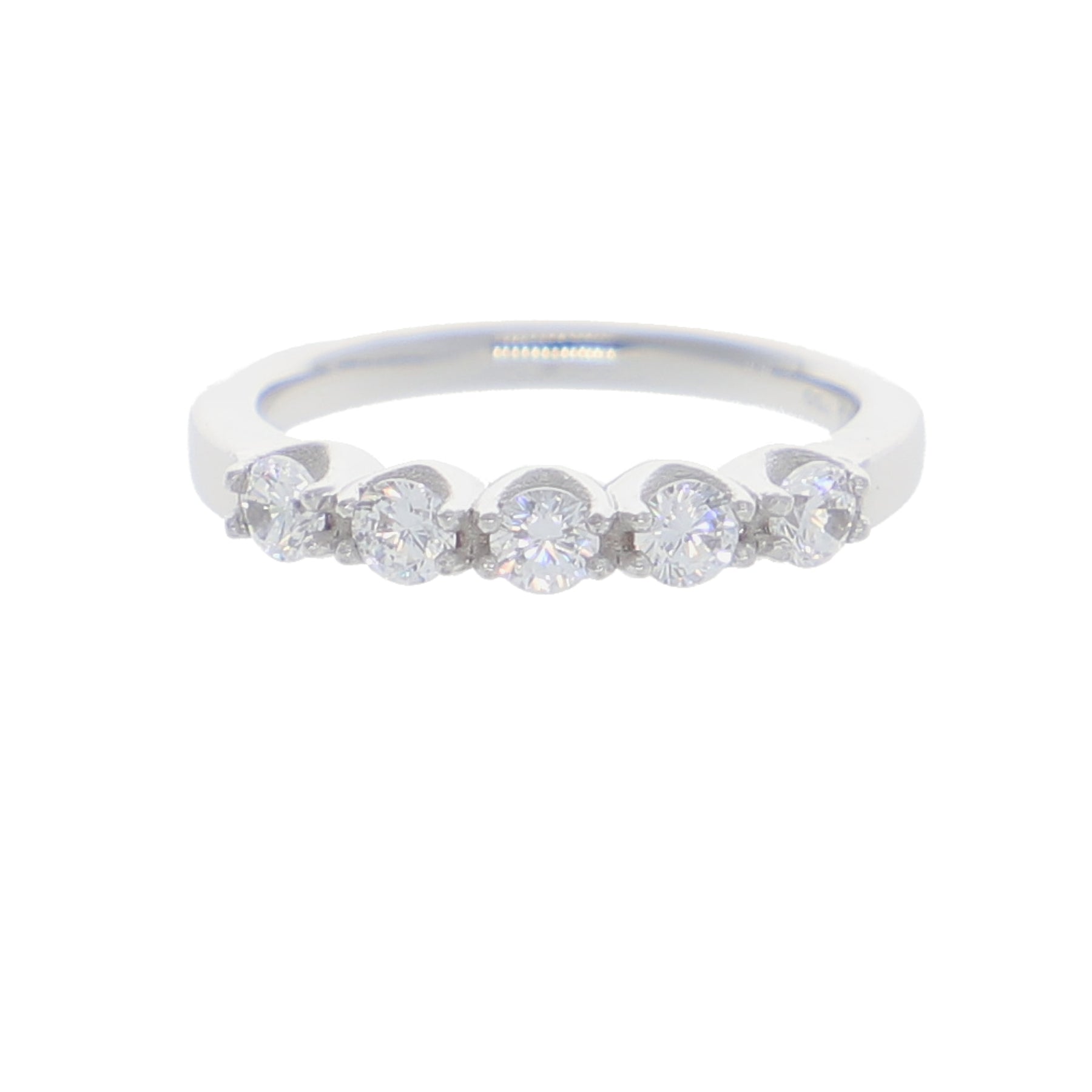 Anillo Oro Blanco y Circones Medio Cintillo AN-13709