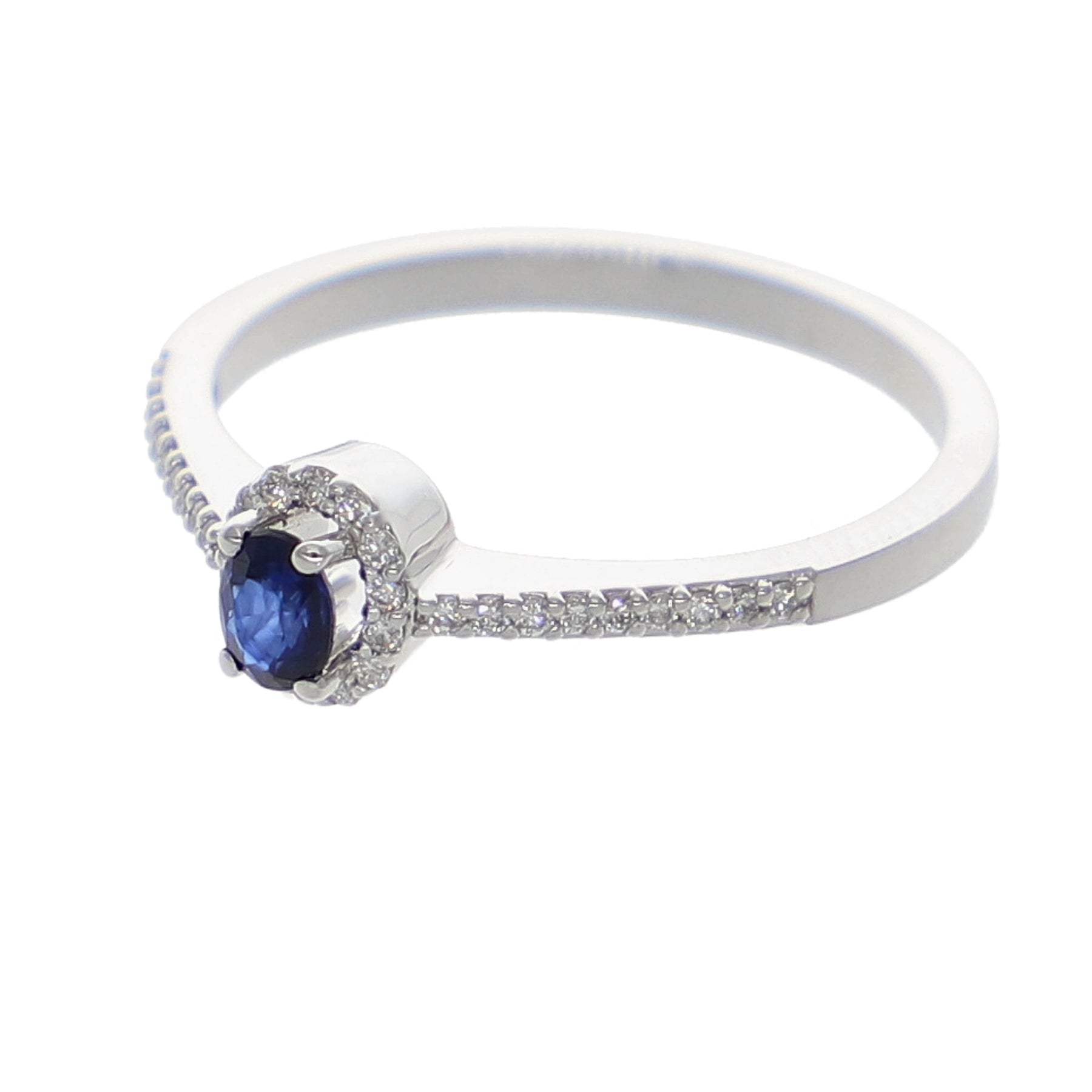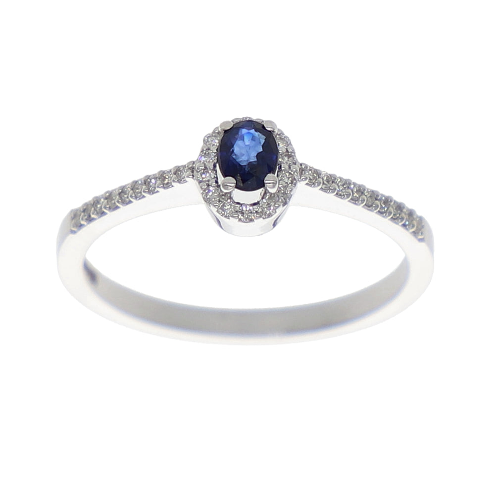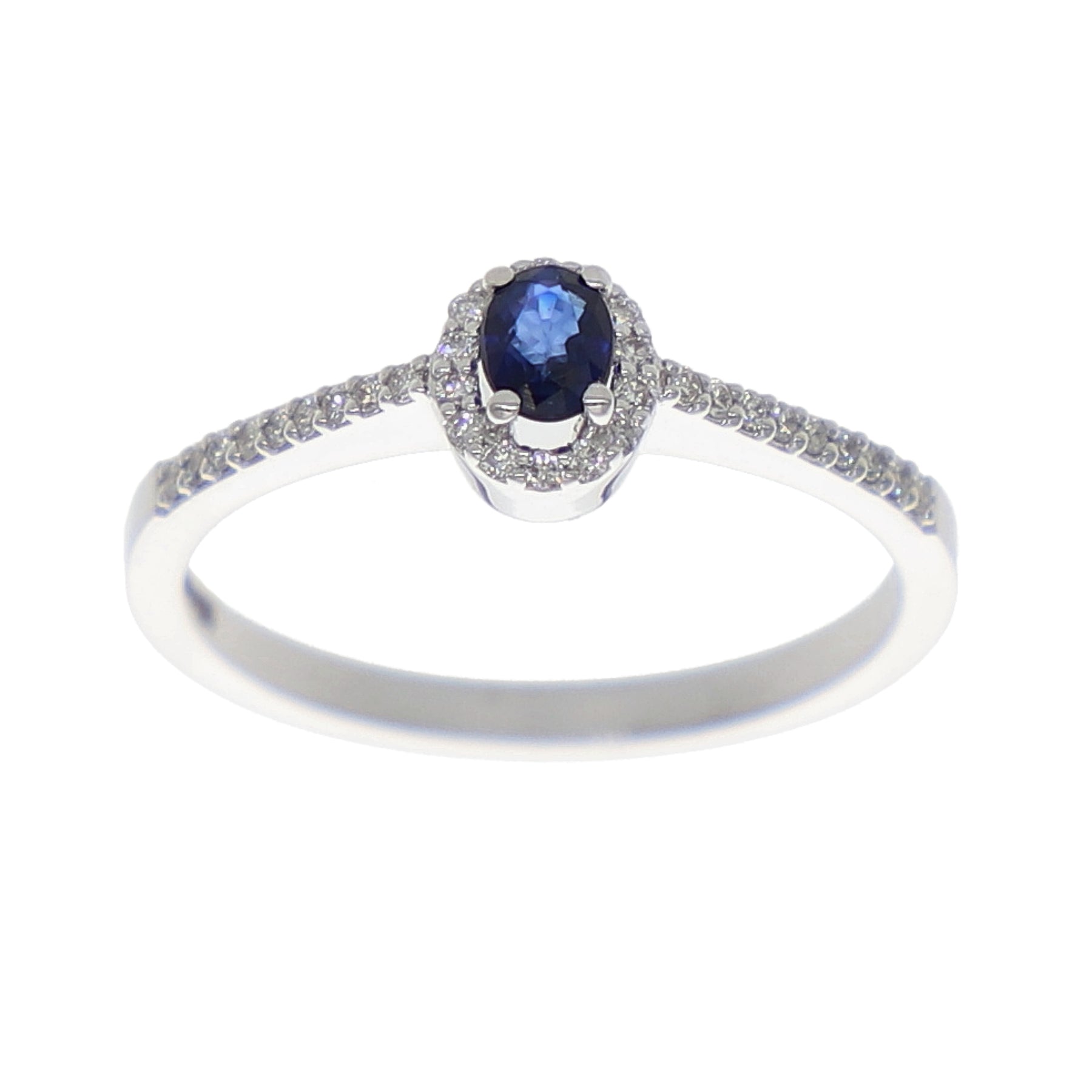 Anillo Oro Blanco Zafiro Azul y Brillantes AN-13941