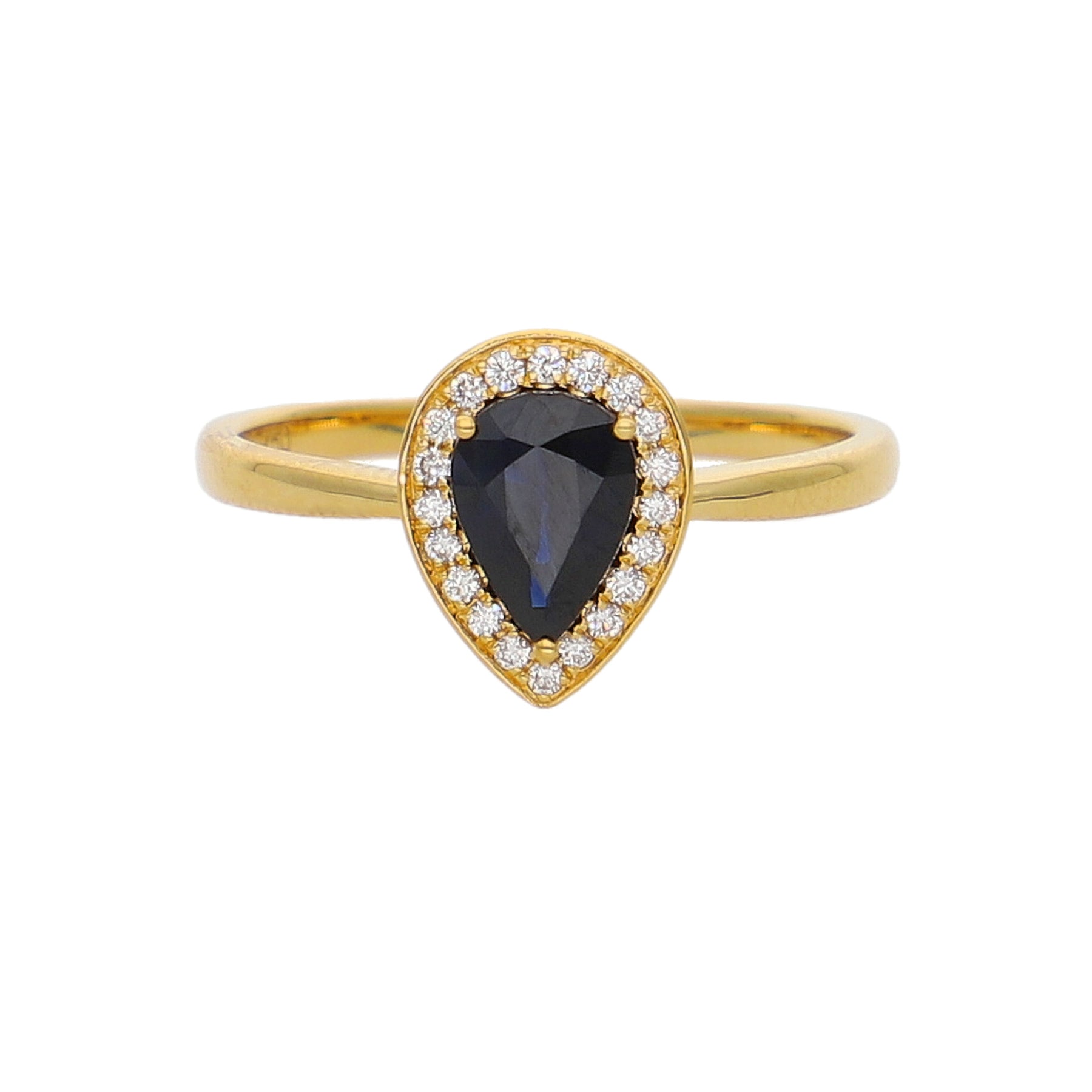 Anillo Oro Amarillo Zafiro Azul y Brillantes AN-14086
