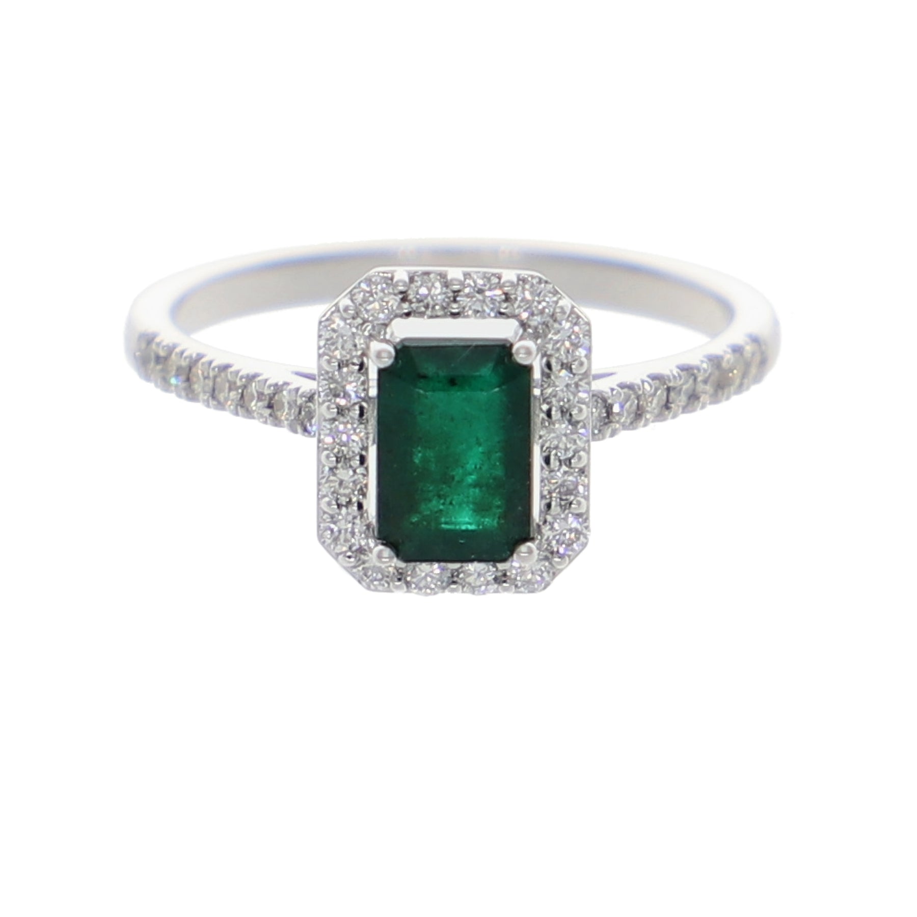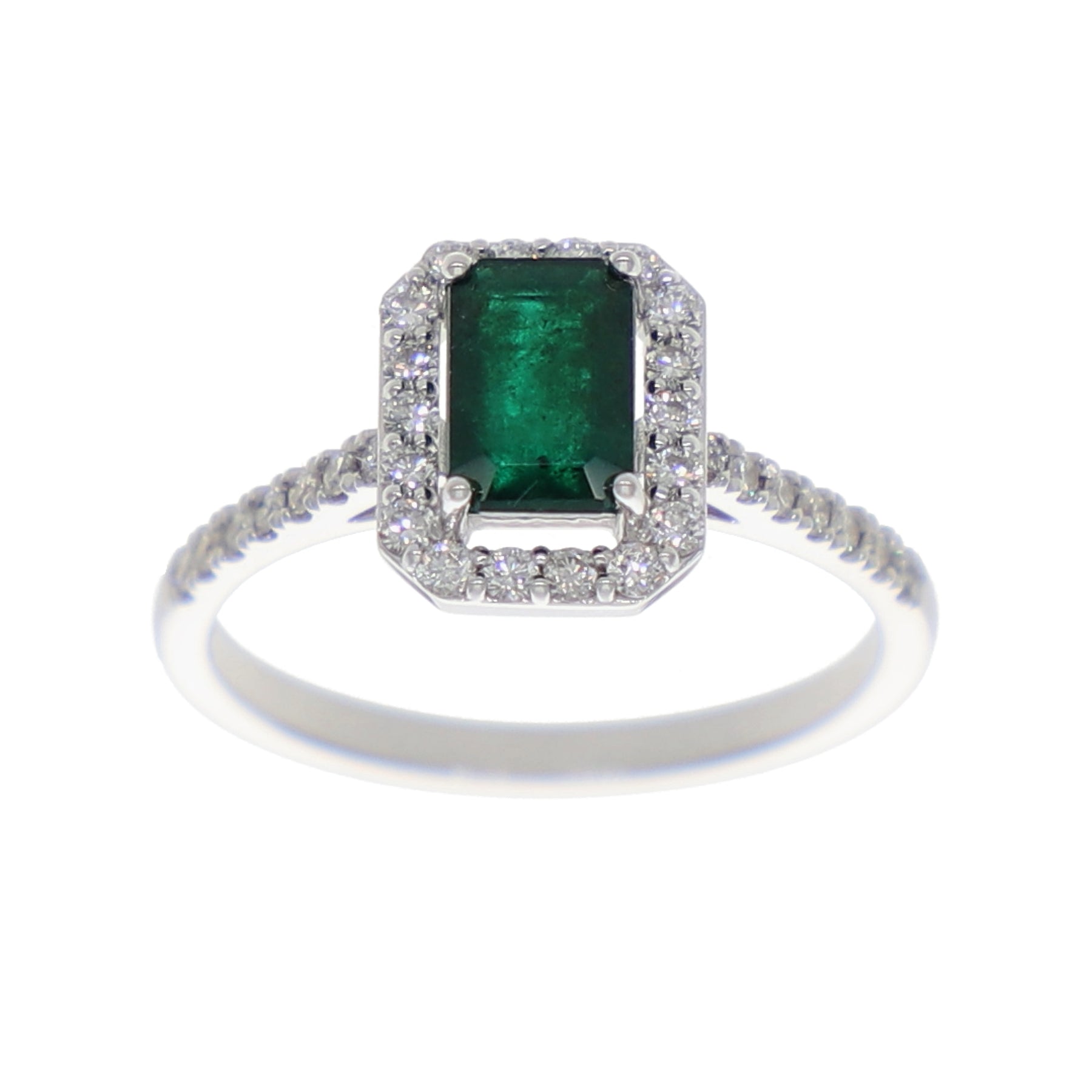 Anillo Oro Blanco Esmeralda y Brillantes AN-13933