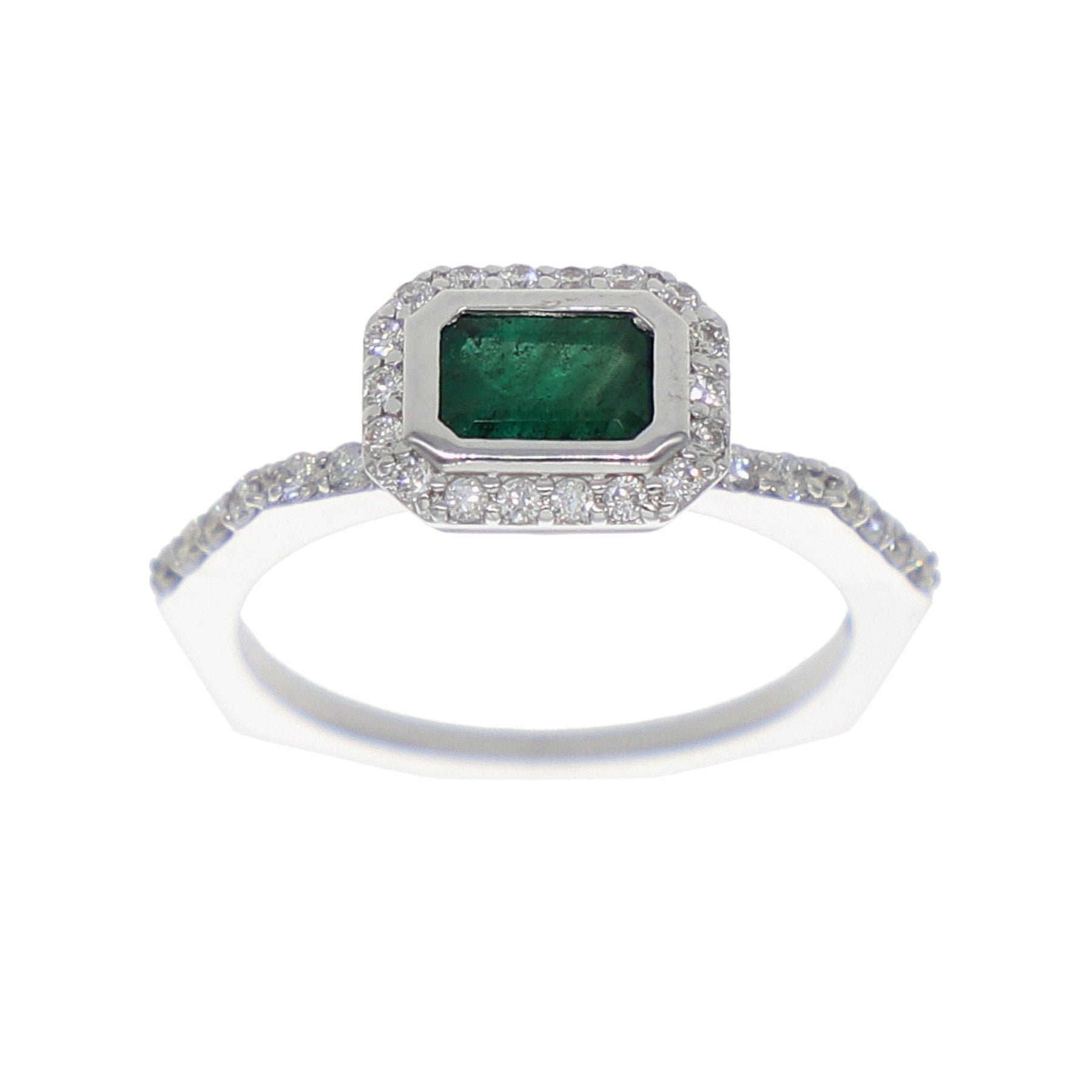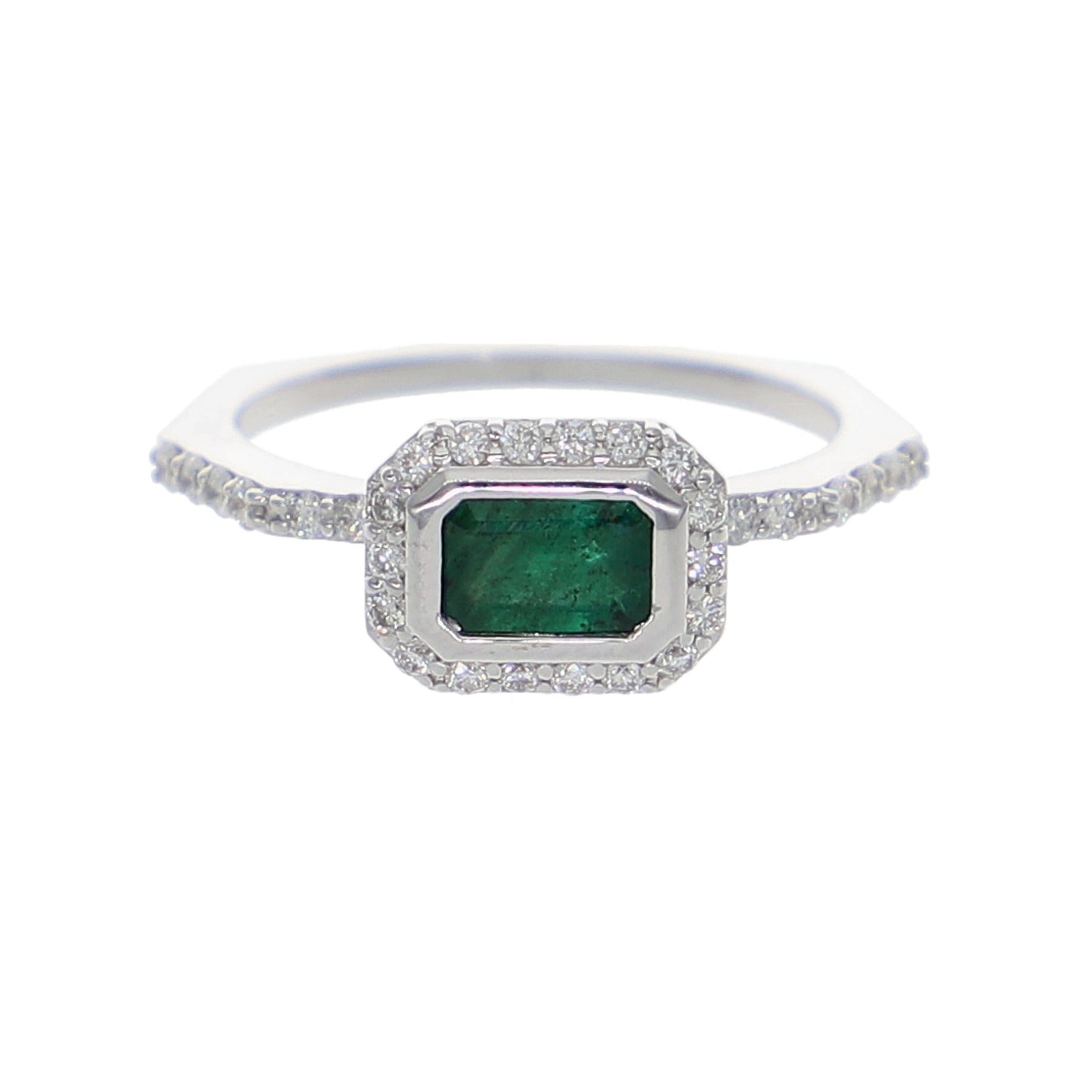 Anillo Oro Blanco Esmeralda y Brillantes AN-13939