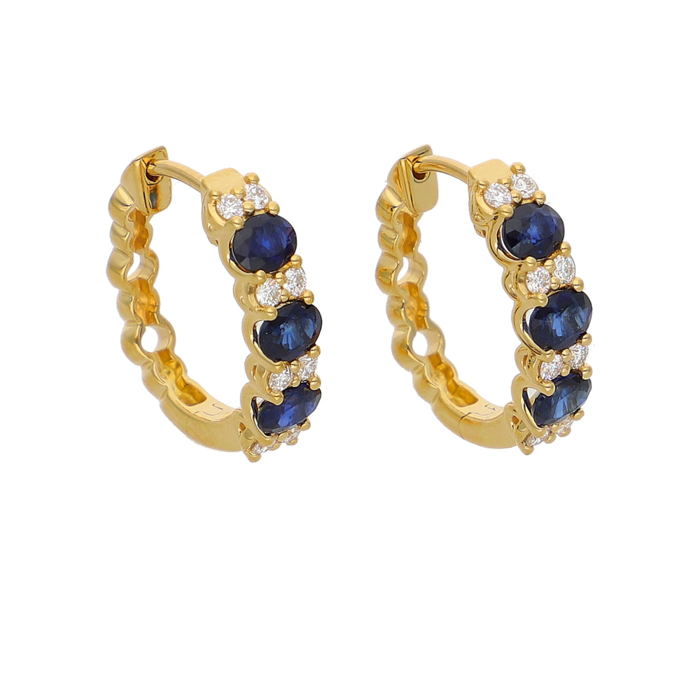Aros argolla de oro amarillo 18kt, zafiro azul y brillantes.