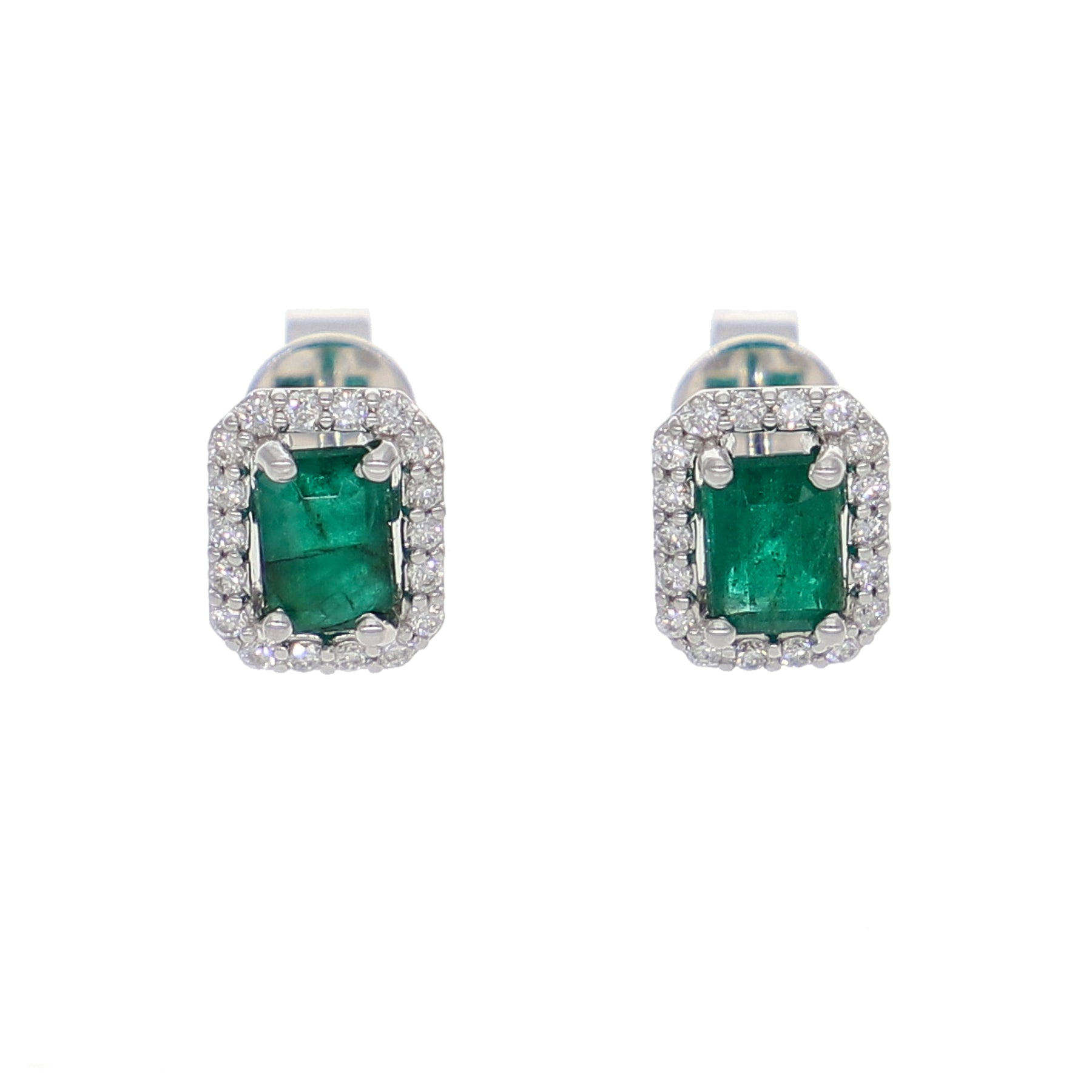 Aros Oro Blanco Esmeraldas y Brillantes AR-13964