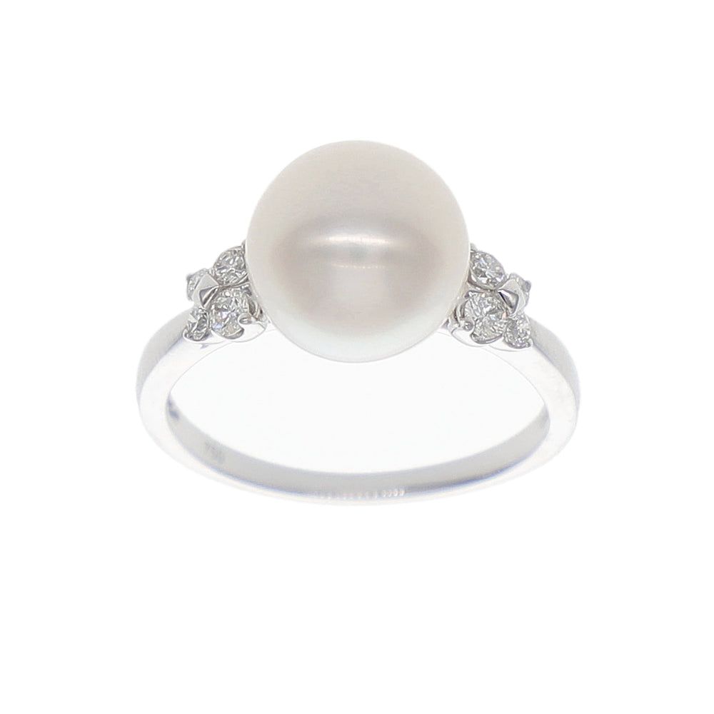Anillo Oro Blanco Perla y Brillantes AN-14030