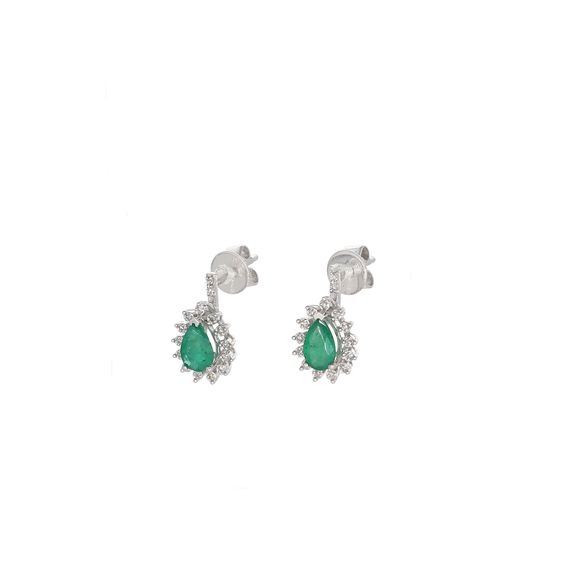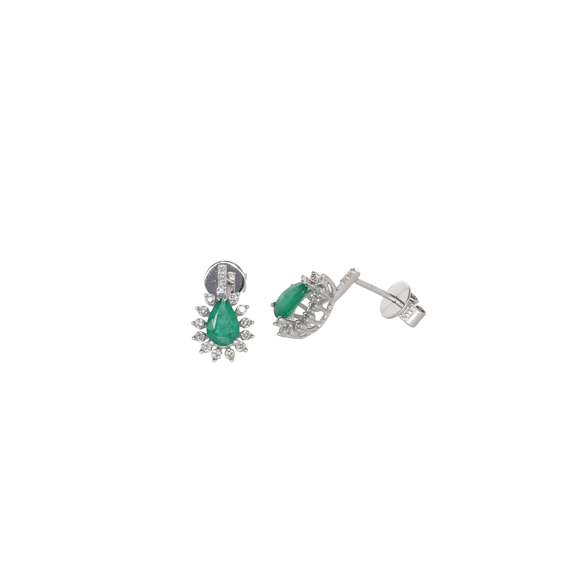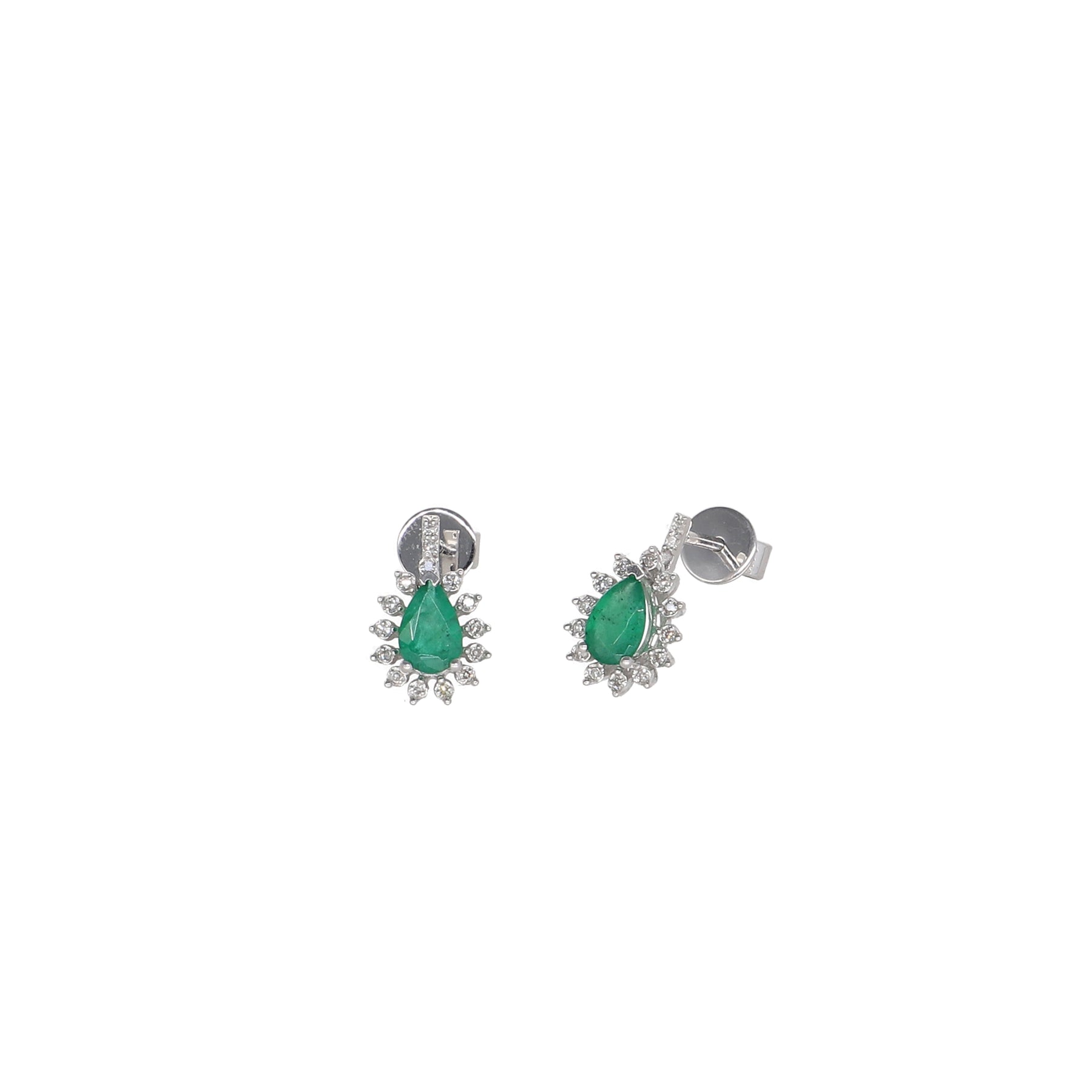 Aros Oro Blanco 14kt, Esmeralda y Brillantes AR-13857