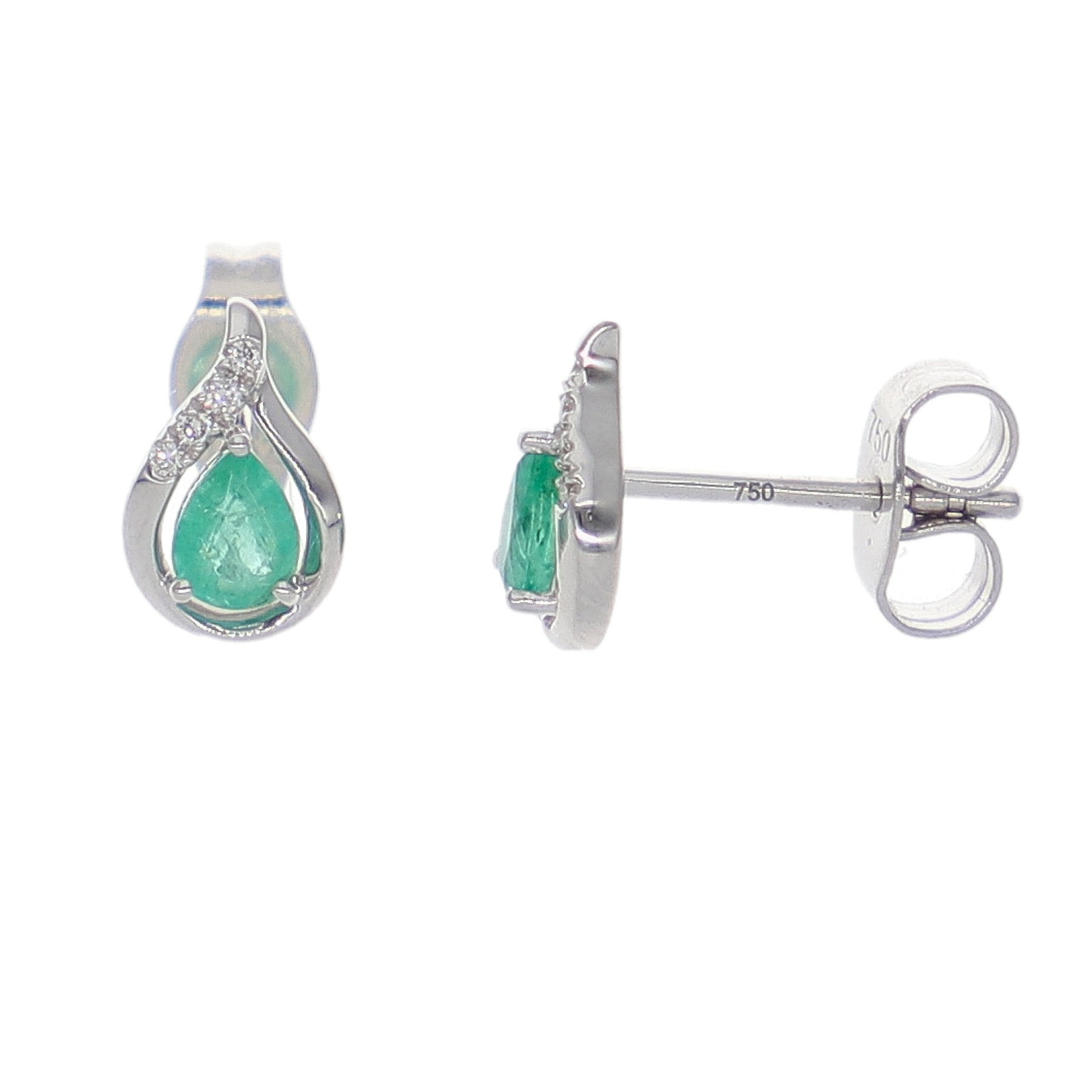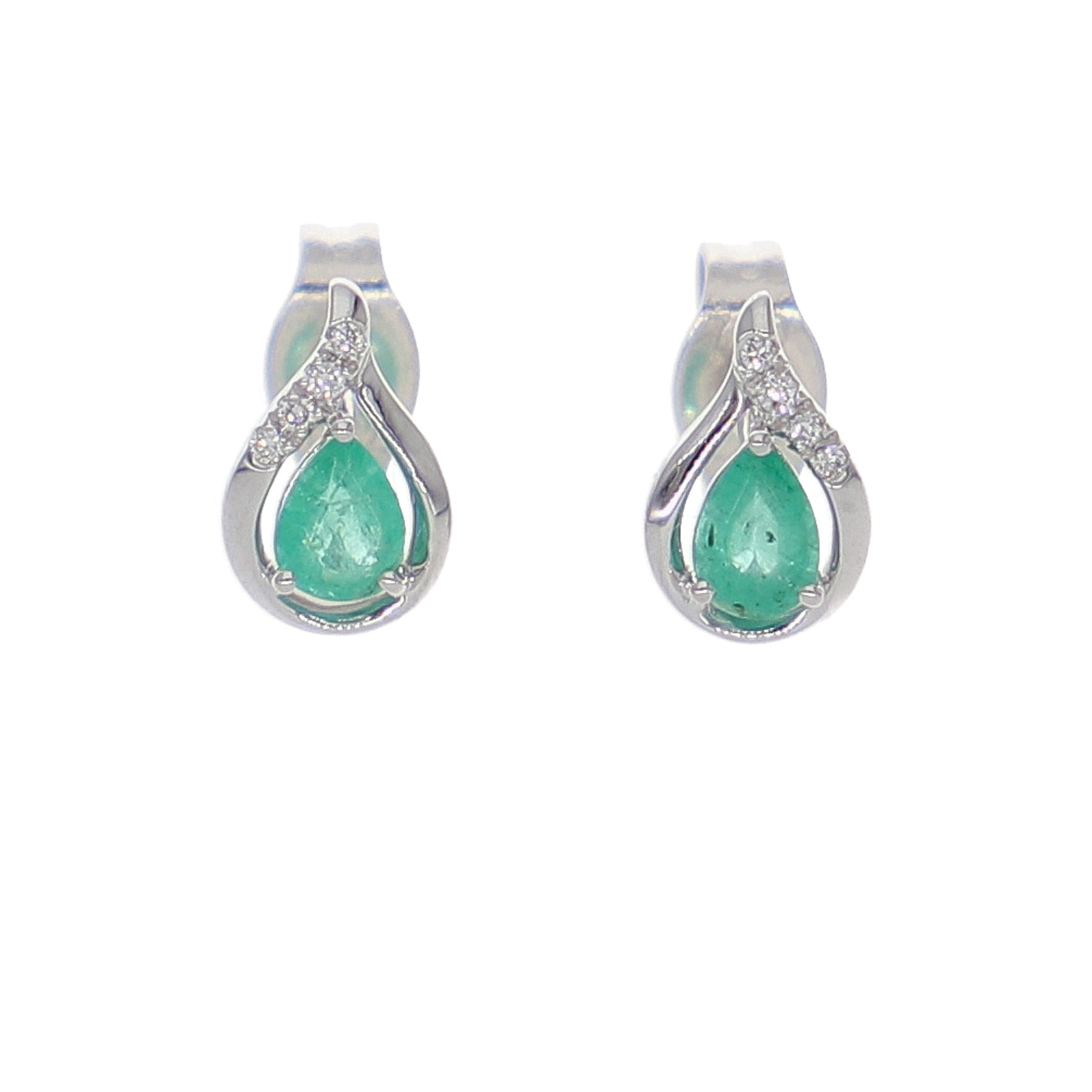 Aros Oro Blanco Esmeraldas y Brillantes AR-14053