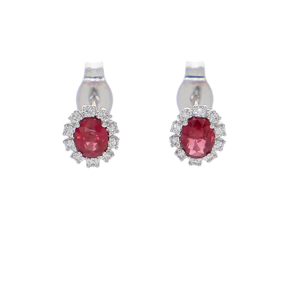 Aros Oro Blanco Rubí y Brillantes AR-14055