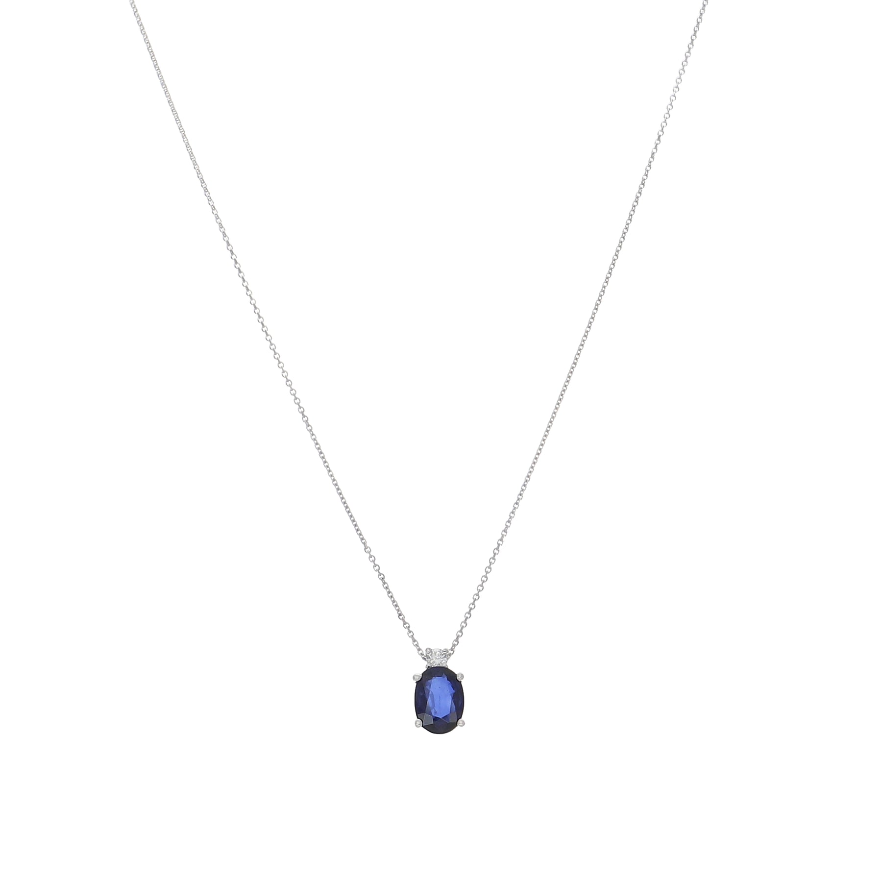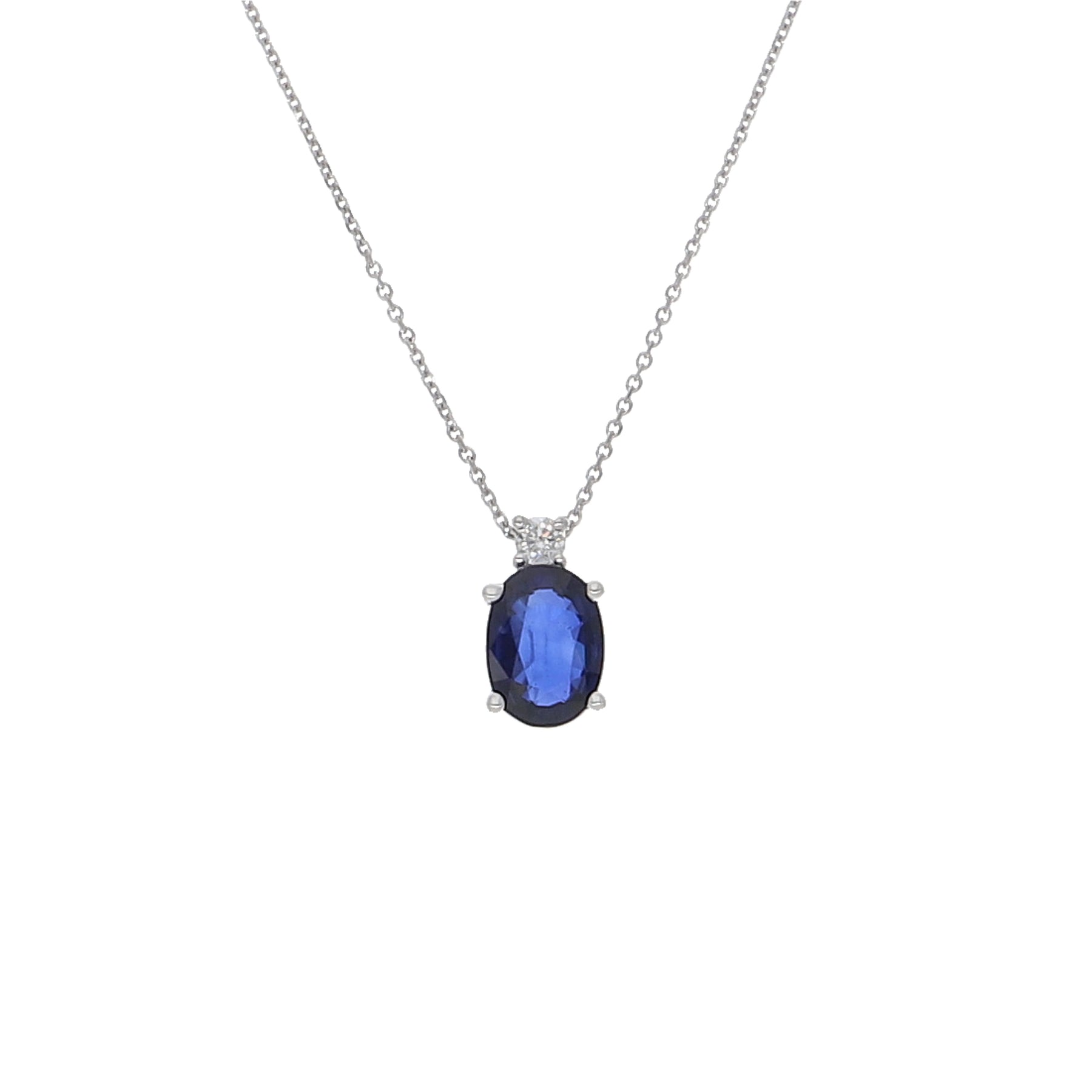 Collar Oro Blanco Zafiro Azul y Brillante CO-13984
