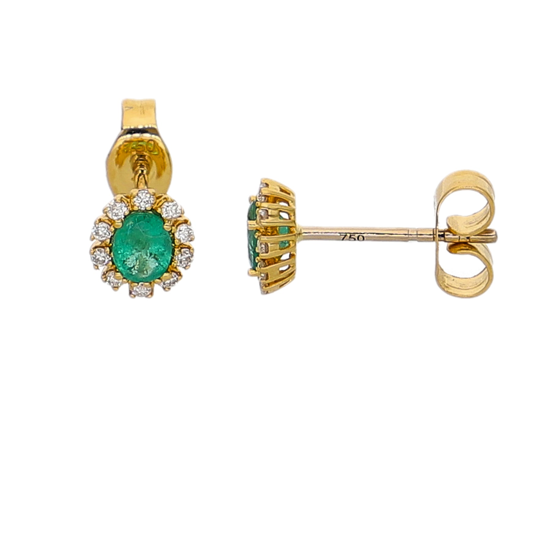 Aros Oro Amarillo Esmeraldas y Brillantes AR-14022