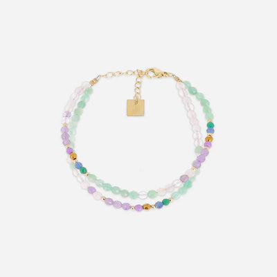 Pulsera Oro Amarillo Amatista y Cuarzo Rosa PU-14296
