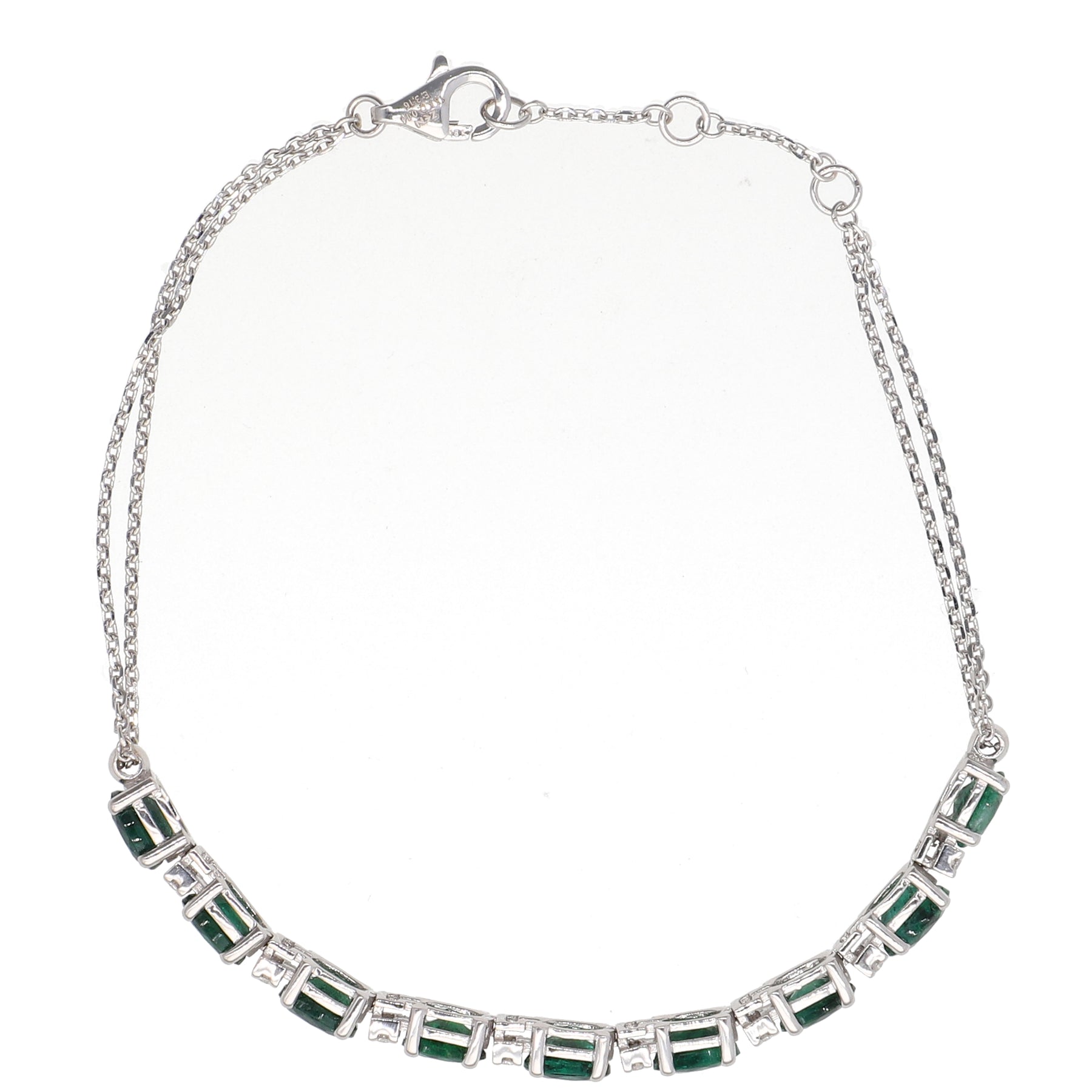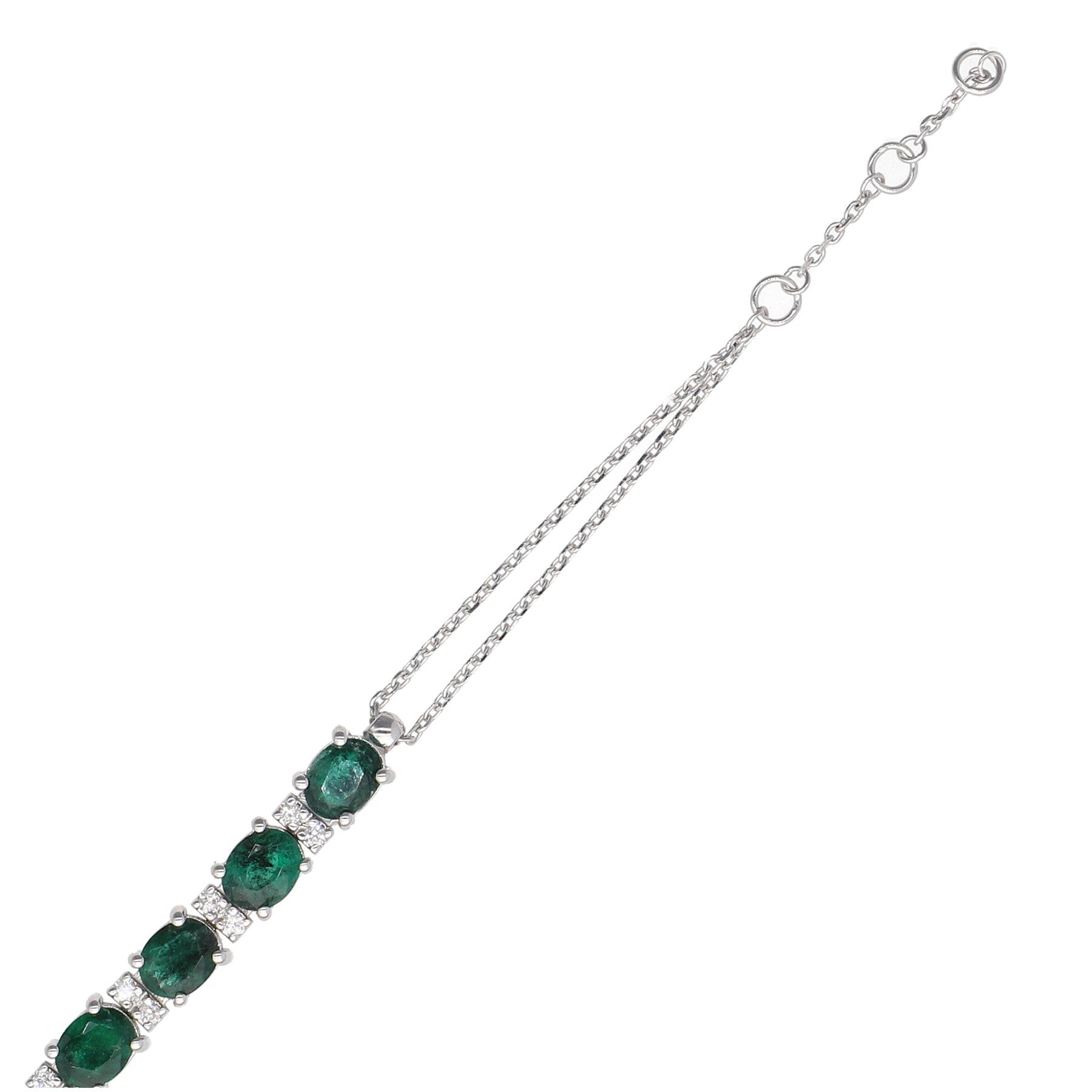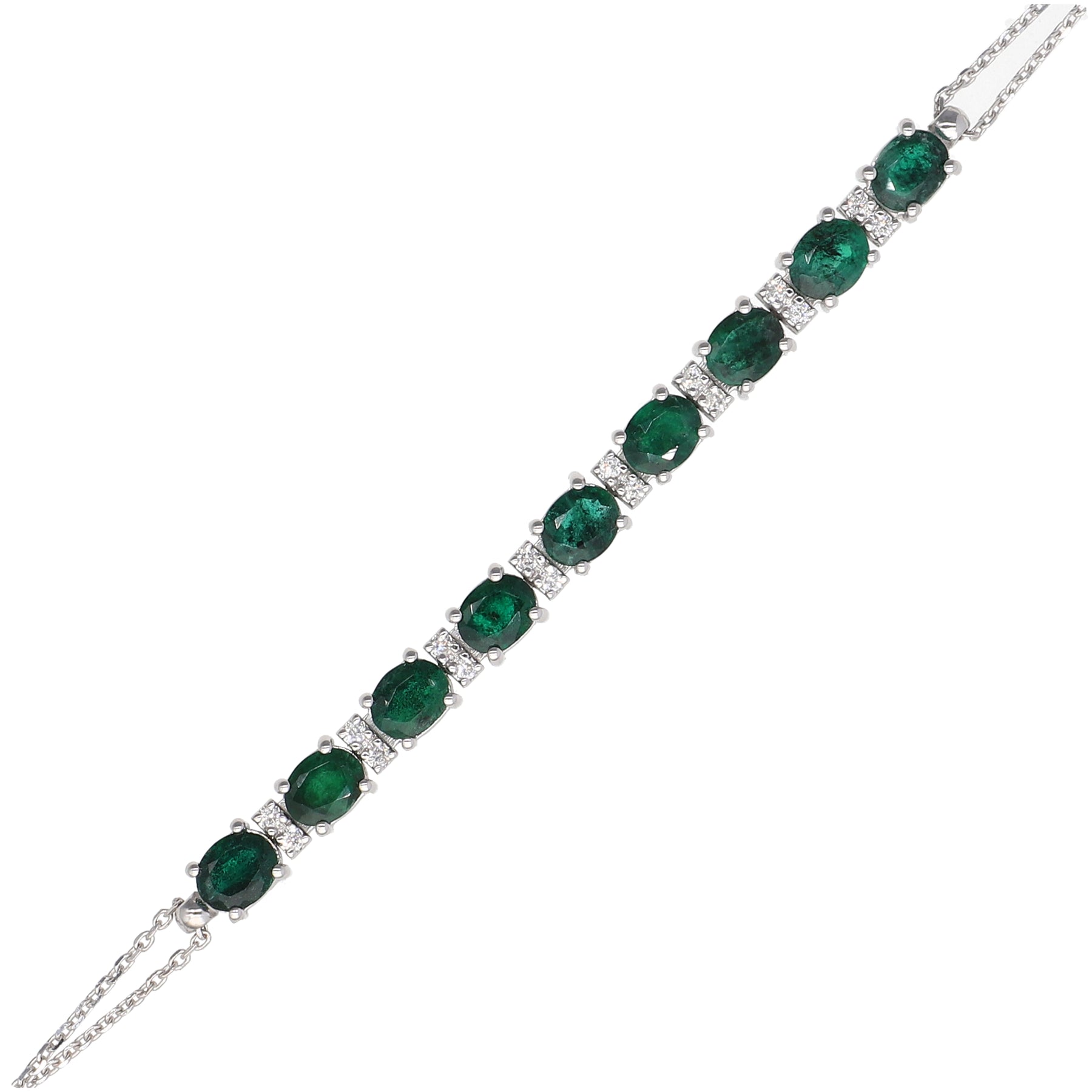 Pulsera Oro Blanco, Esmeralda y Brillantes PU-13855