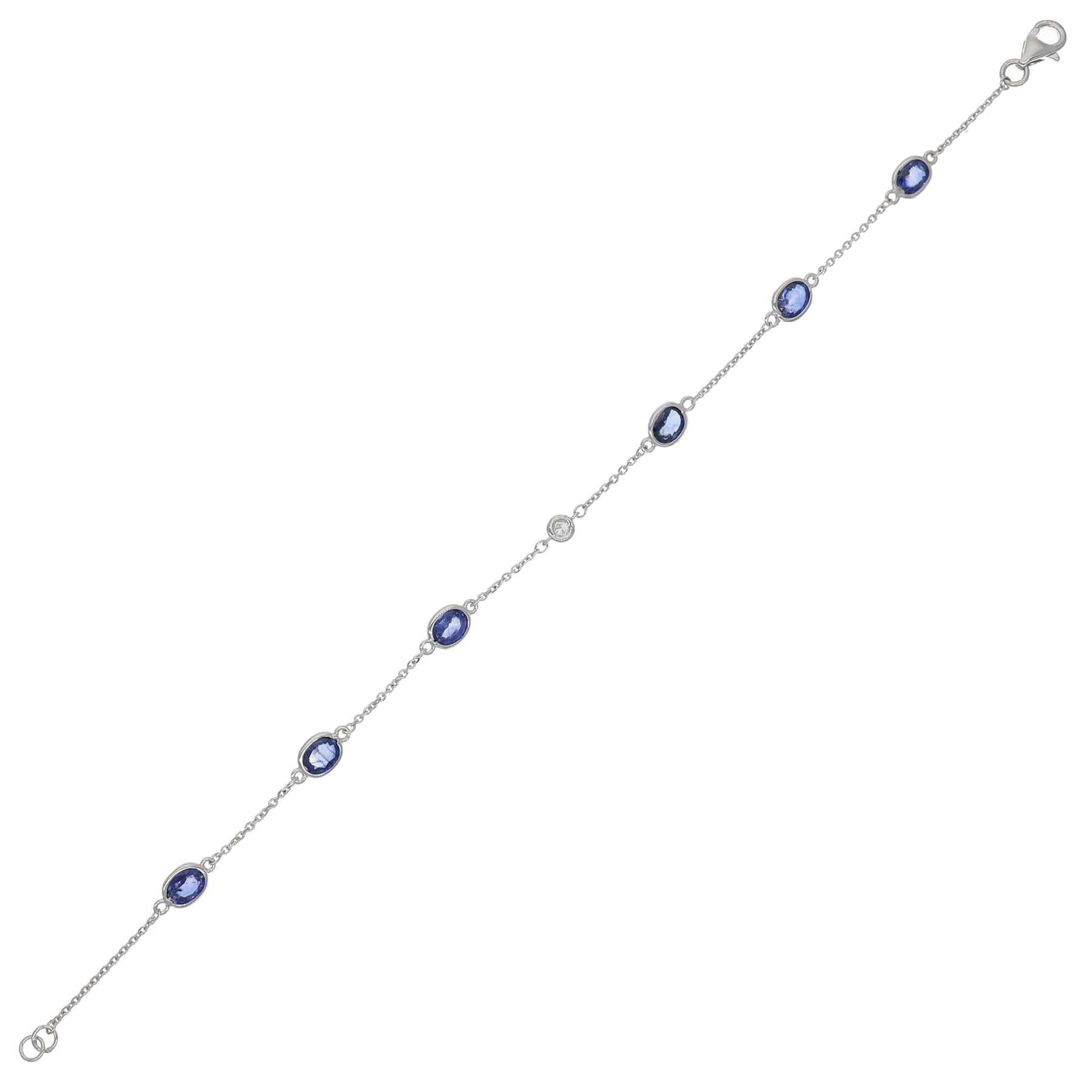 Pulsera Oro Blanco Zafiro Azul y Brillantes PU-13976