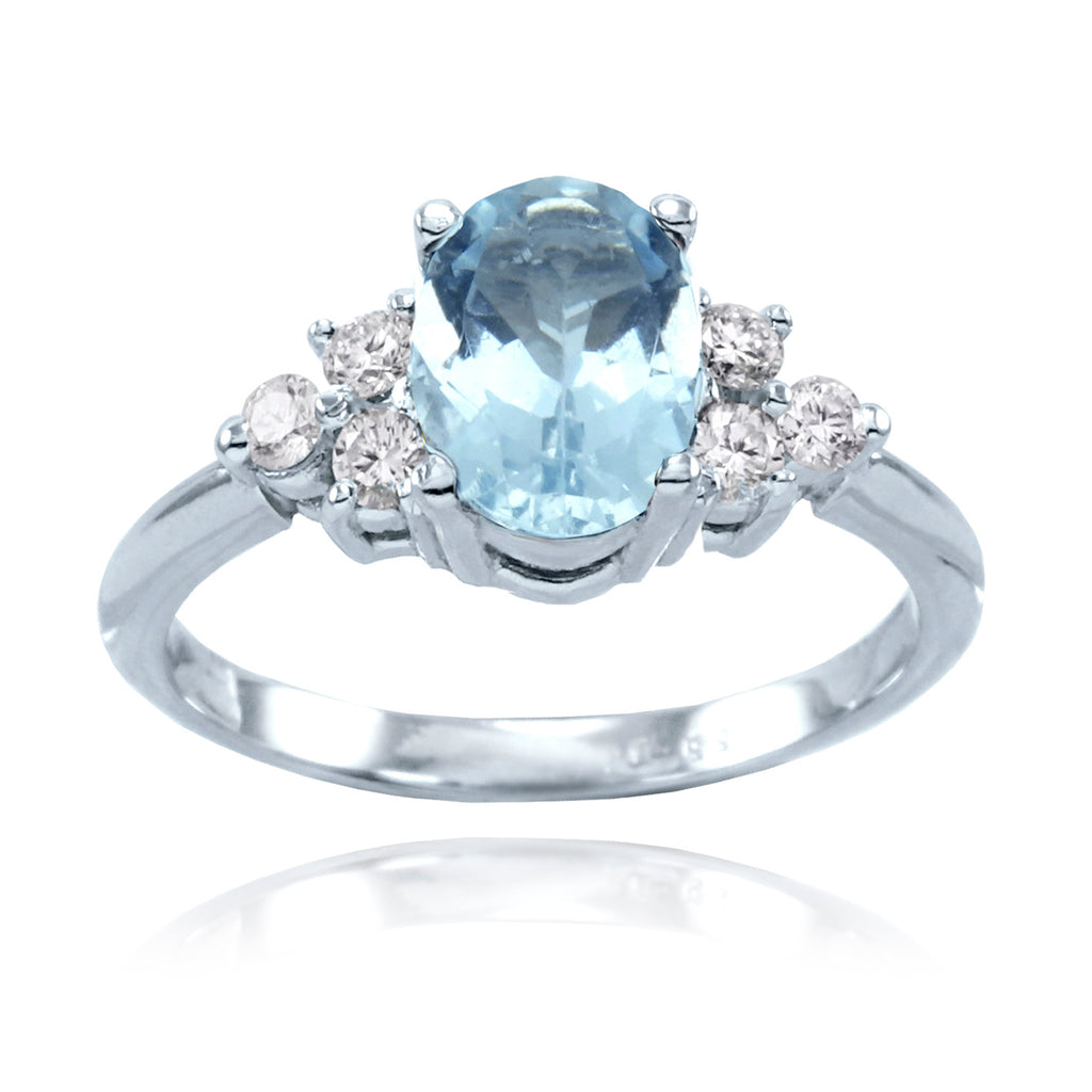 Anillo Oro Blanco Aguamarina y Brillantes AN-13795