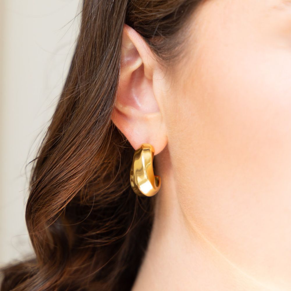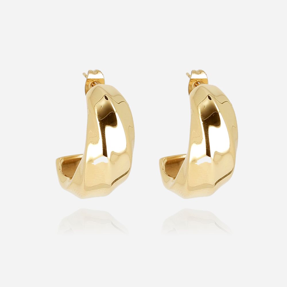 Pendientes de aro de acero liso o dorado con oro fino mediante ionización. Tienen un efecto retorcido en los laterales.