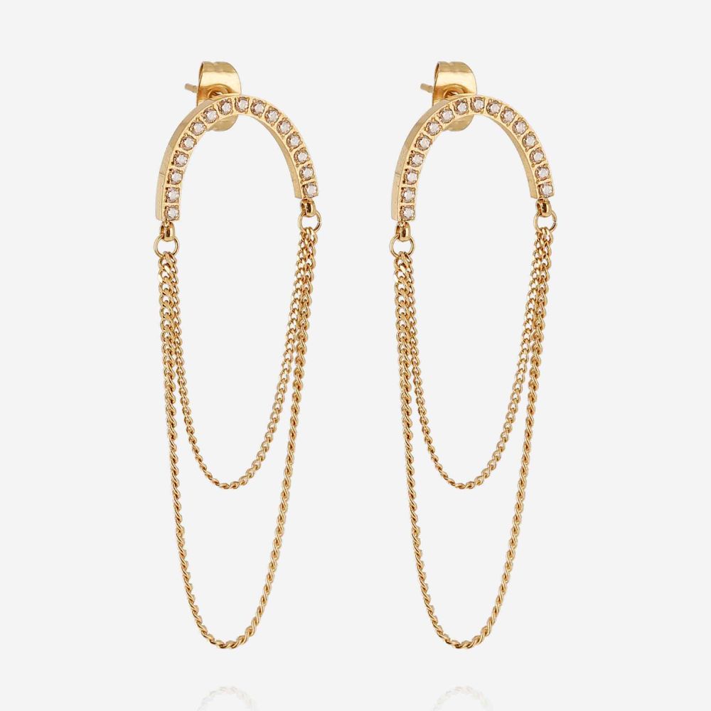 Pendientes de acero liso o dorado con oro fino mediante ionización, compuestos por un círculo abierto con tres puntas de diferentes tamaños y un circonio.