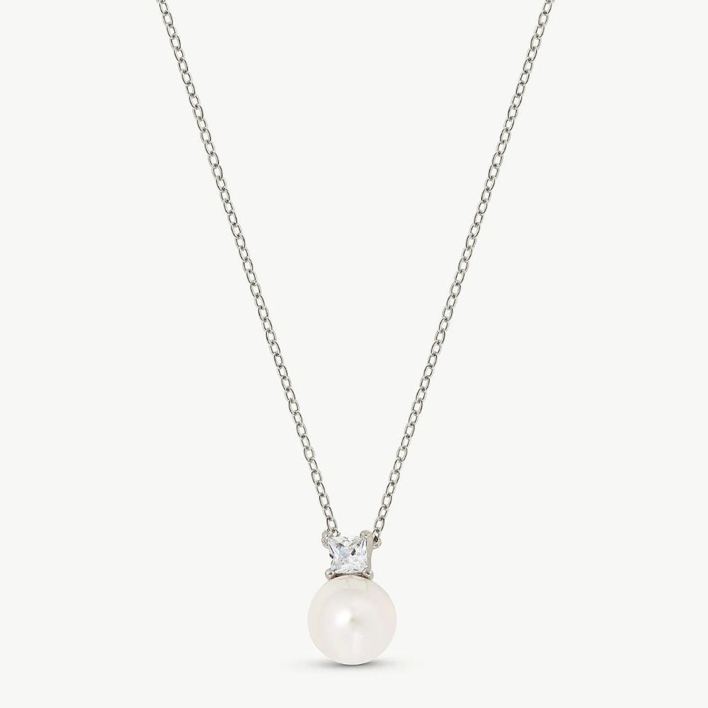 Collar corto 42/47cm en plata rodiada, 12mm perla redonda blanca y circonitas. Joyas para tu día a día.