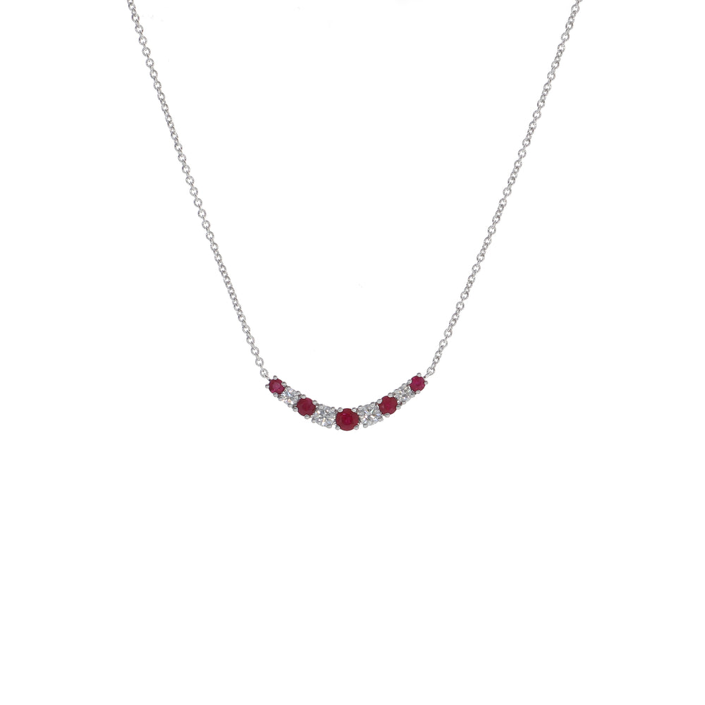 Collar Oro Blanco Rubí y Brillantes CO-13457