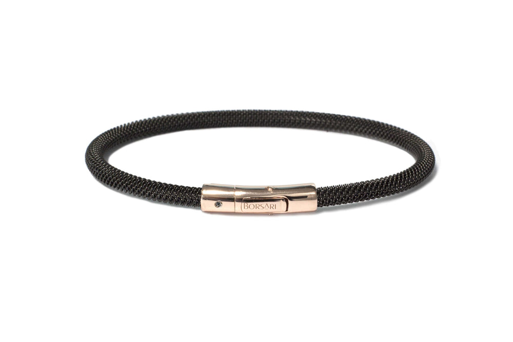 Pulsera de acero negro y cierre de plata enchapado con un brillante.
