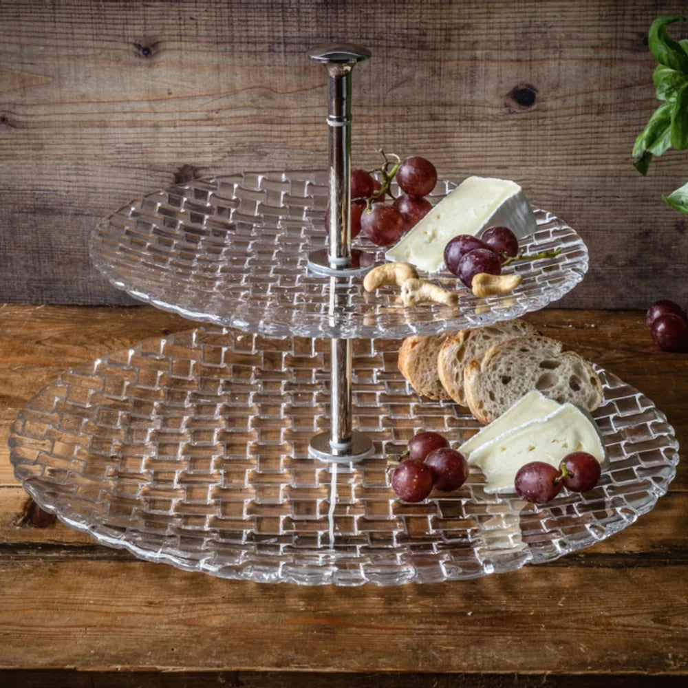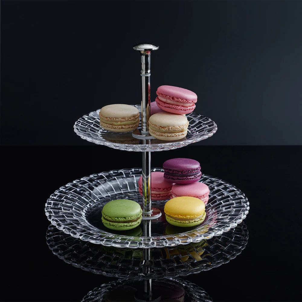 Este set de 2 niveles de la línea Bossa Nova de Nachtmann es perfecto para cualquier ocasión o celebración. Además de darle elegancia a tu mesa es un set único y muy práctico. Acomoda tus aperitivos, postres, pastelitos, o lo que quieras en sus 2 niveles.